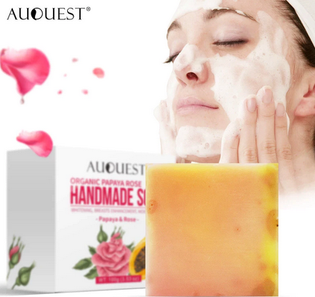 Savon fait main à la papaye et à la rose.